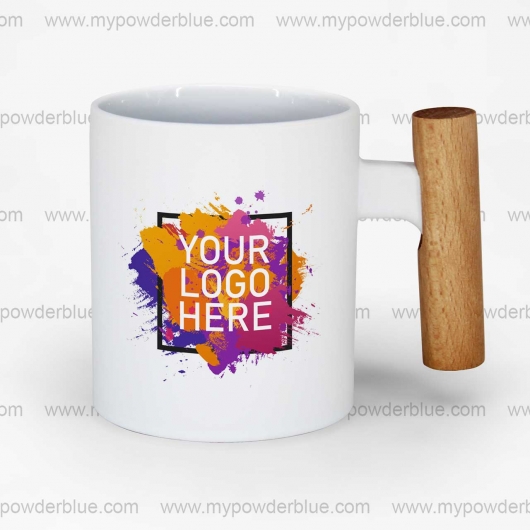 Customize this 11 oz Matte Ceramic Coffee Mugs with Wooden Handle with your logo or design.